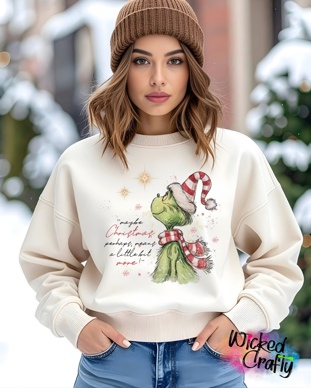 Prrhaps Christmas means a little bit more crewneck sweatshirt is perfect for the Holiday season. Super soft material in all sizes.